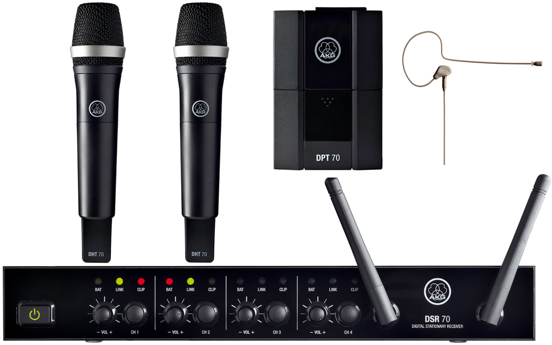 Вокально/інструментальний трикомпонентний мікрофонний набір, що складається з цифрового приймача DMS70, який працює на частоті 2,4 ГГц, ручного мікрофона-передавача DHT70 із суперкардіоїдним капсулем D5, що забезпечує чудову якість звуку з мінімальним зворотним зв’язком і шумом для професійного вокального виконання. Поясний цифровий передавач DPT70 із триконтактним міні-XLR роз’ємом сумісний за рівнем сигналу з гітарою, бас-гітарою, гарнітурою та інструментальними мікрофонами. Студійна якість досягається завдяки 24-бітному, 48 кГц аудіокодуванню, яке не стискає сигнал.