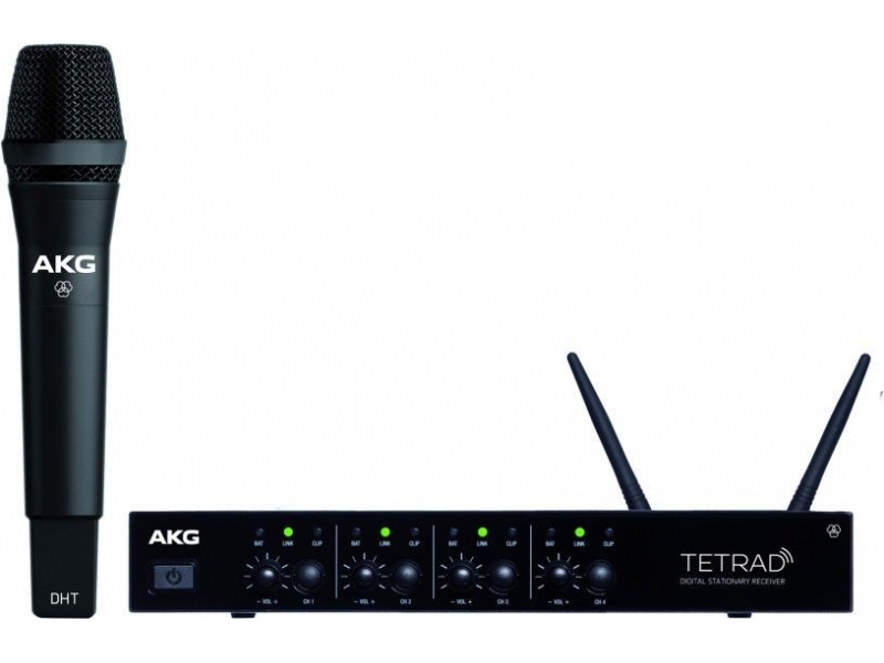 DHTTetrad – професійний бездротовий ручний передавач. Відзначається можливістю роботи у всьому світі без ліцензії та кодуванням звуку 24 біта, 48 кГц – передає незжатe студійне звучання під час роботи. 128-бітний стандарт шифрування сигналу AES запобігає обривам сигналу, що робить модель ідеальним вибором для конференцій з високим рівнем безпеки.