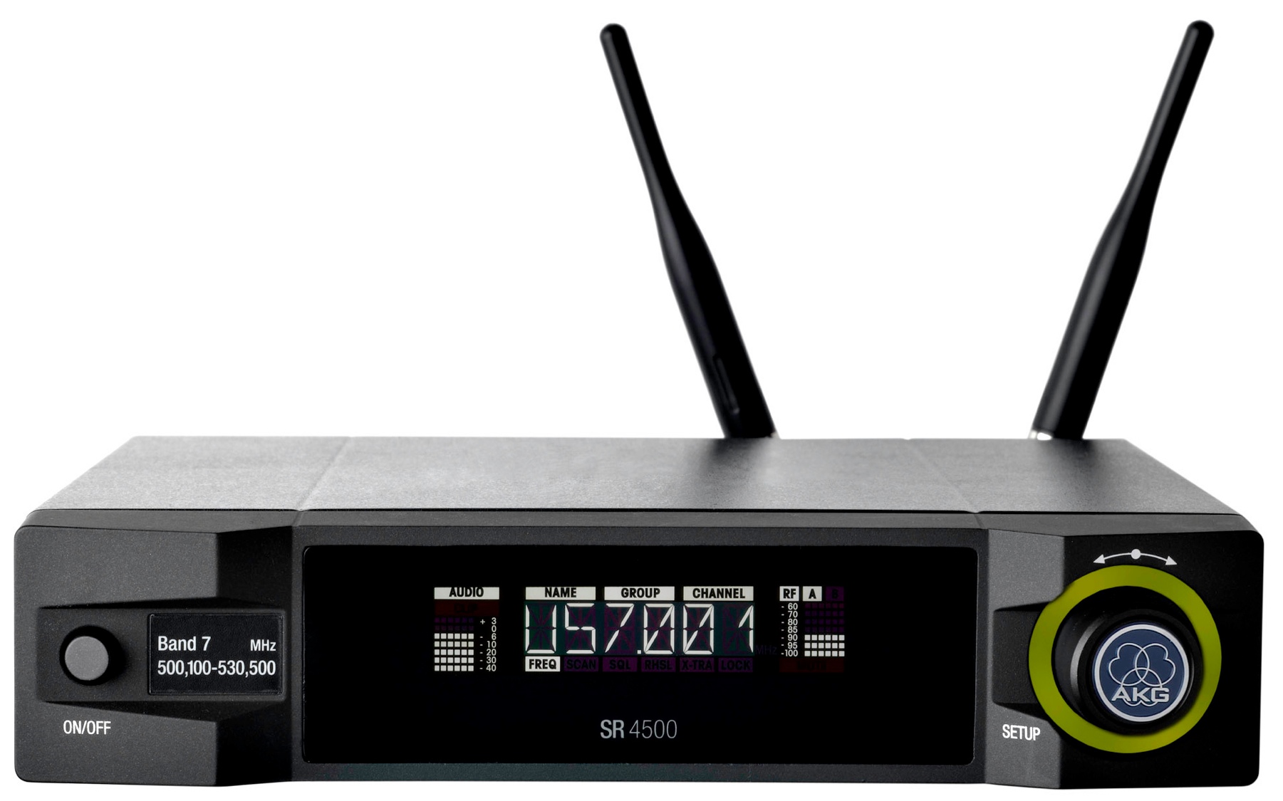 Використання кількох частотних діапазонів дозволяє оперувати щонайменше 70 каналами одночасно. Великий кольоровий дисплей із підсвіткою та поворотний перемикач роблять SR4500 простим у використанні, а програмований світлодіодний індикаторкільце наочно відображає важливі системні параметри.
