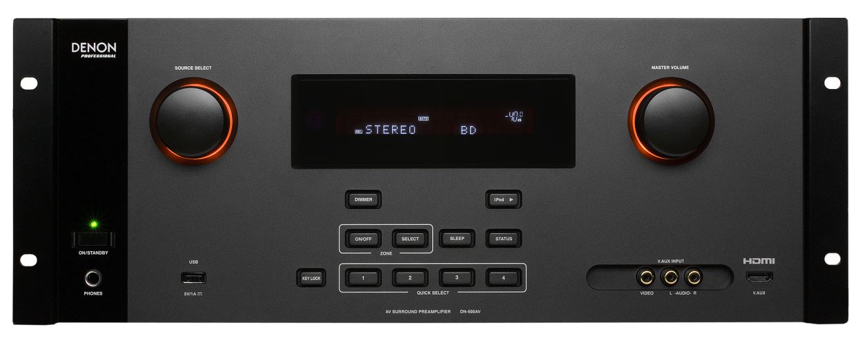 Denon DN-500AV представляє собою процесор об'ємного звуку 7.1 з додатковим стереопередпідсилювачем, що має вражаючі технічні характеристики та багато сучасних можливостей, включаючи відтворення з мережевих дисків і USB-пристроїв. Для зручного підключення портативної відеотехніки новий AV-процесор має вхід HDMI на передній панелі.