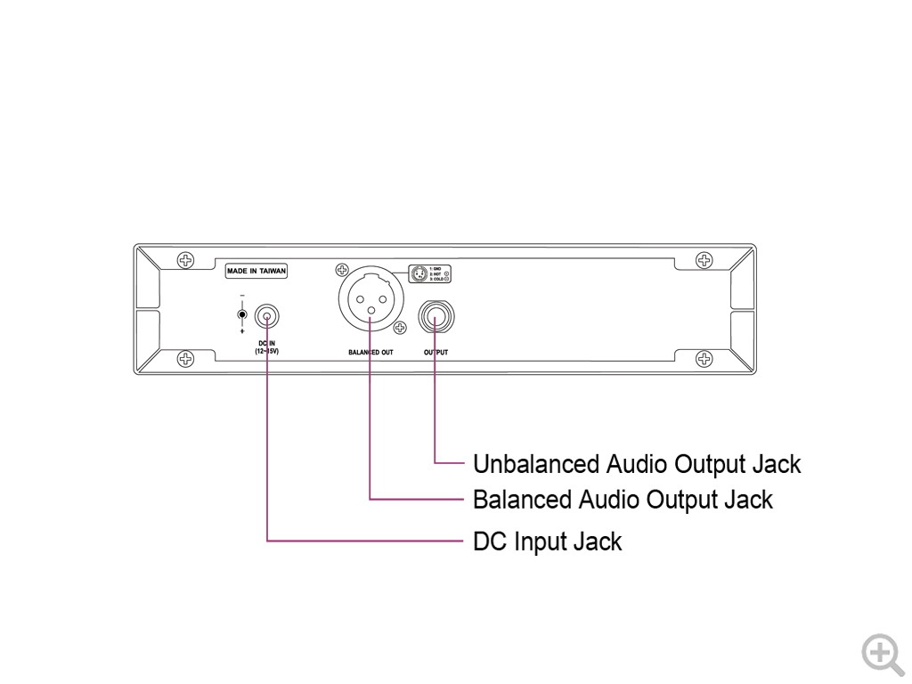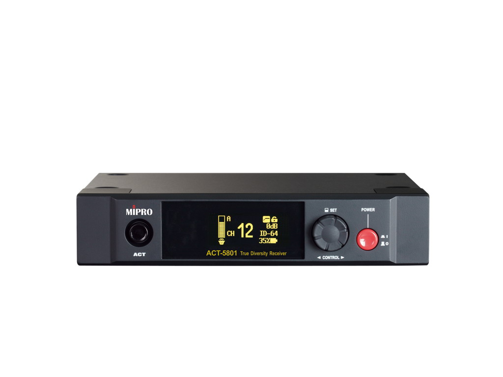 Цифровий одноканальний диверситивний приймач, діапазон ISM 5.8 ГГц, АЦ-ЦА 48 кГц/24-біт, Auto Scan, 12 встановлених каналів, режим обходу UHF/Bluetooth/Wi-Fi частот, габарит напіврек (9.5"), затримка <1.5 мс, вбудована антена, виходи: XLR і 6.3 мм TS Jack.