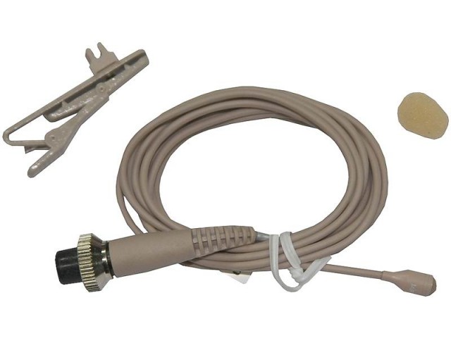 Конденсаторний мікрофон-петличка, спрямованість: круг (ненаправлений), діаметр капсуля 4.5 мм, частотна характеристика 40 - 20 000 Гц, роз’єм 4-pin mini-XLR, довжина кабелю 1.5 м, колір бежевий.