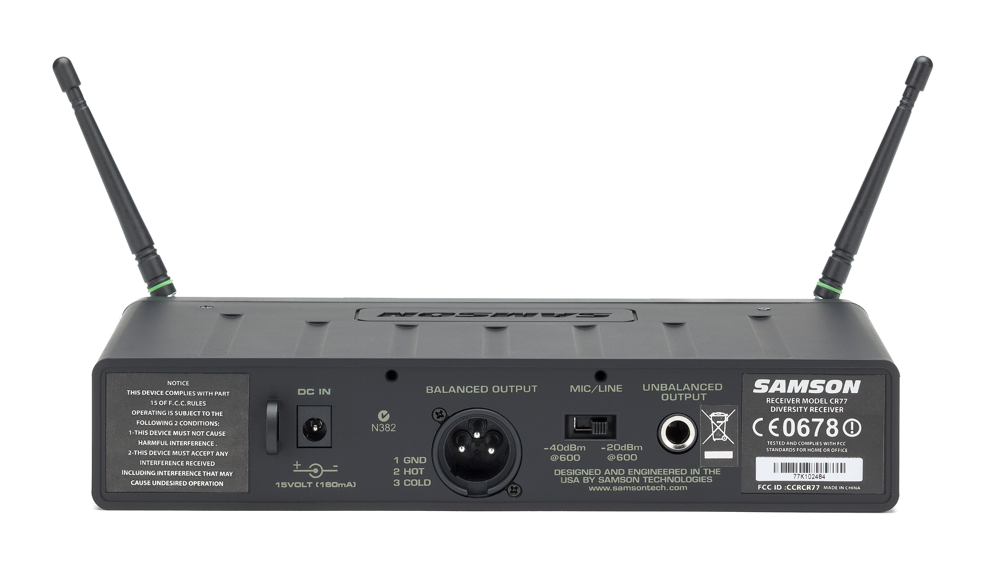 - Приймачем у системі служить приймач CR77: двоканальний «true-diversity», що працює в UHF діапазоні. Він ефективно взаємодіє з передавачами серії AirLine77.