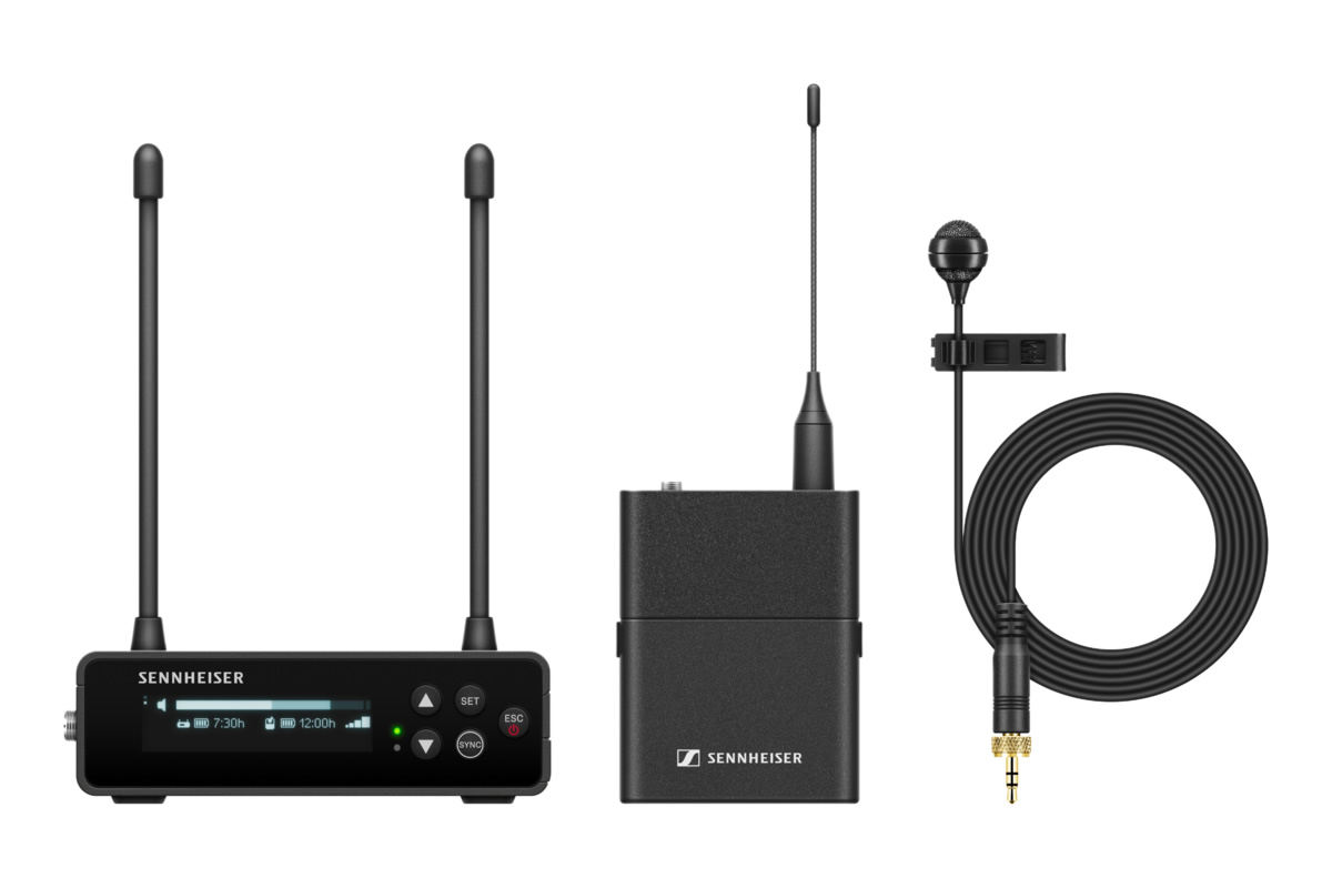 Портативна цифрова UHF бездротова мікрофонна система з цифровим портативним одноканальним приймачем EW-DP EK, передавачем-накладкою EW-D SK, кардіоїдним петличним мікрофоном ME 4, монтажними компонентами (включаючи монтажну пластину та холодний башмак), акумулятором і аксесуарами. Ідеально підходить для освітніх закладів, конференцій і живих презентацій.