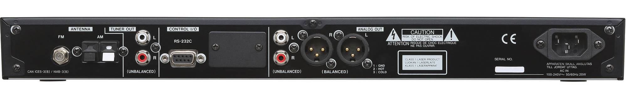 Професійний CD-програвач, модуль Bluetooth, слот для карт SD/SDHC або USB, FM/AM тюнер, аналоговий вихід XLR, 2xRCA, вихід на навушники, 1/8 Jack вхід, функція «Power on Play».