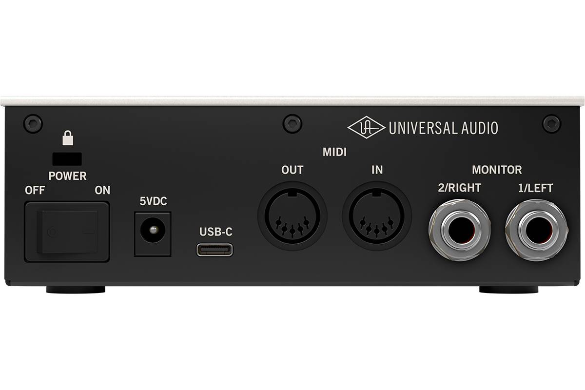 USB-С аудиоинтерфейс 1х2, АЦ-ЦА 24-бит/192 кГц, предусилитель на базе UA 610, 2 выхода, MIDI вход/выход, выход на наушники, аппаратный мониторинг, ПО: Ableton Live Lite, Marshall Plexi Classic, Melodyne Essential, LX480, Ampeg SVT-VR, Brainworx, Virtual Drummer DEEP, Virtual Bassist DANDY, Spitfire LABS