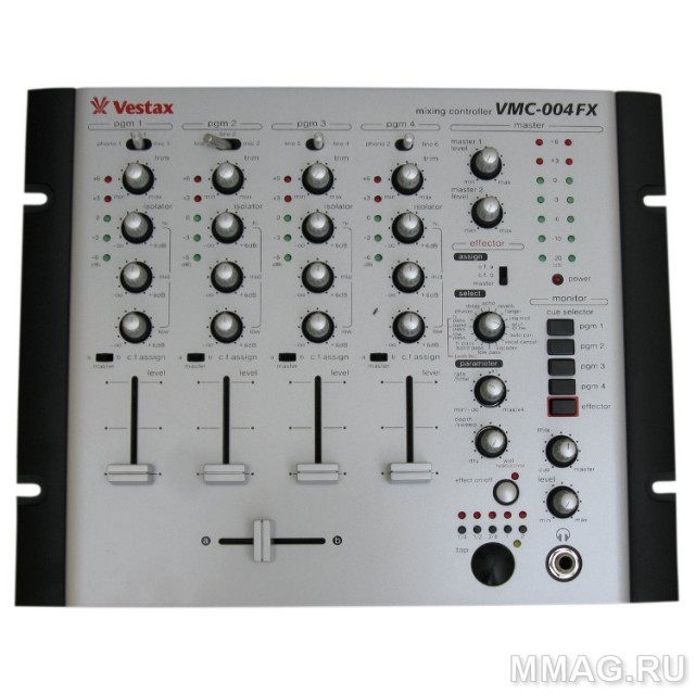 Профессиональный 4-х канальный dj-микшер, 3-х полосный EQ, 3-х диапазонный изолятор, входы: LINE INx6, PHONO INx2, MIC INx2 выходы: MASTERx2, MASTERx1, 1 выход на наушники.
