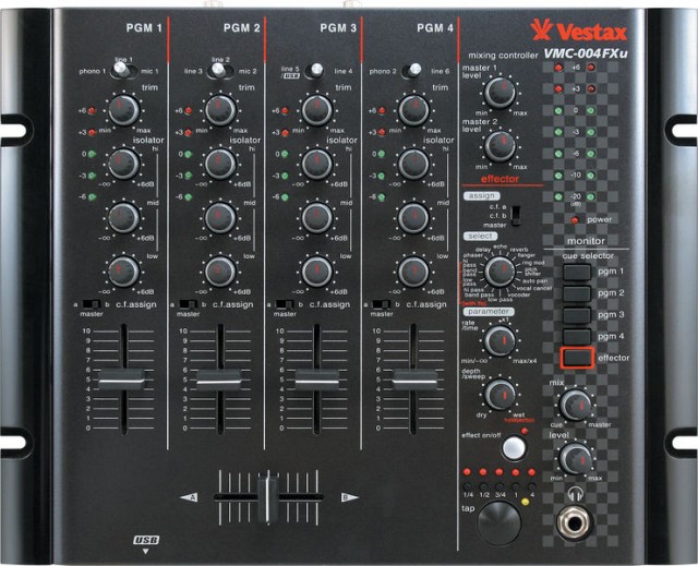 Профессиональный 4-х канальный микшер, 3-х полосный EQ, входы:4xLine,4xPhono,2xMic,2xDigital, 1x Return, 1x USB IN; выходы:2xМaster OUT, 1xBooth OUT,1xRec,1xDigital,1xSend, выход на наушники.