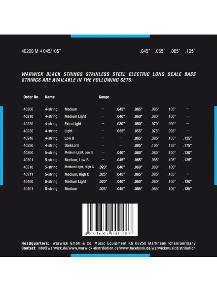 WARWICK 40200 Black Label Medium 4-String (45-105)