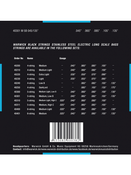WARWICK 40301 Black Label Medium 5-String (45-135)