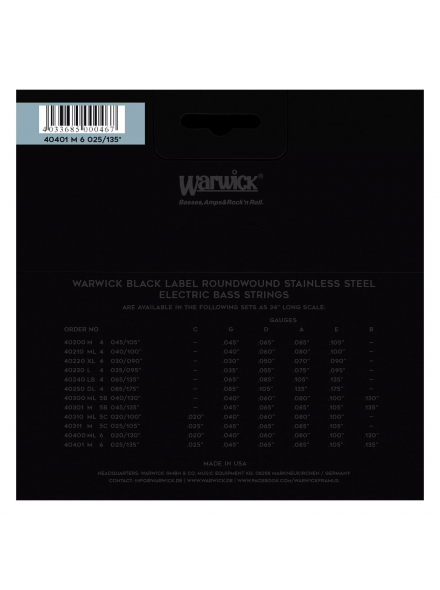WARWICK 40401 Black Label Medium 6-String (25-135)