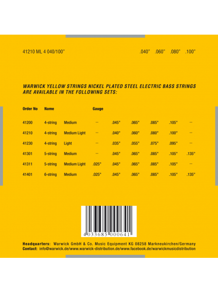 Пройшовши через багато десятиліть створення бас-гітар і співпраці з музикантами, компанія Warwick розробила струни, здатні задовольнити потреби кожного бас-гітариста. Висока якість і тривалий термін служби в поєднанні з комфортом під час гри - ось головні переваги цих струн. Завдяки використанню сучасних технологій виготовлення і якісних матеріалів фахівці Warwick змогли отримати дуже міцні струни зі зменшеним натягом, зберігши традиційне звучання і відчуття при грі.