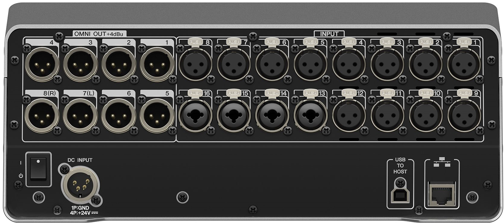 - 16 аналоговых микрофонных/линейных входов (12 XLR, 4 комбинированных XLR/TRS)