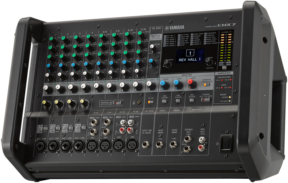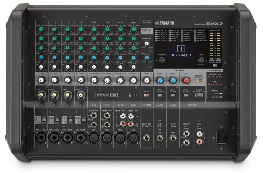 Зворотний зв'язок (feedback) може бути надзвичайно дратівливим під час живих виступів. На щастя, EMX7 має функцію Feedback Suppressor, що базується на унікальній цифровій технології Yamaha. Одне натискання кнопки - і проблема зворотного зв'язку вирішена.