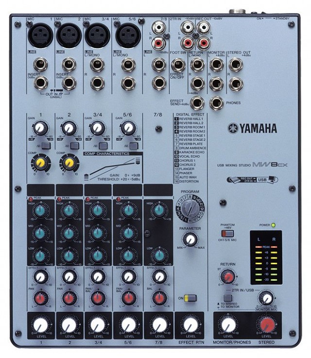 Новый микшер MW8CX серии USB Mixing Studio компании YAMAHA намного упрощают процесс создания музыки. В сочетании с программной звуковой станцией Cubase AI4 новая серия микшеров MW представляет собой портативную студию для записи отдельных музыкантов и использования саунд-продюсерами/аранжировщиками в турне. Соедините MW с USB-входом на вашем ноутбуке или настольном компьютере и вы получите быструю, высококачественную студию аудиозаписи. Серия MW обладает настоящим "plug-and-play" интерфейсом с использованием порта USB, не требующего дополнительных драйверов, и позволяет легко записывать моносигналы или двухдорожечные стереомиксы разных источников на компьютере.