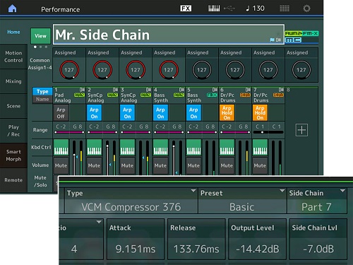 Smart Morph дозволяє здійснювати морфінг між звуками FM-X. Його складний Алгоритм Штучного Інтелекту створює інтерактивну карту морфінгу із восьми звуків FM-X. Ви можете грати на цій карті з сенсорного екрану або використовувати Super Knob для переміщення між двома точками. Результатом є приголомшлива кількість цікавих та інтерактивних нових звуків.