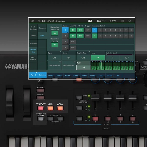 Motion Sequences — це синхронізовані за темпом, керуючі послідовності, що повністю настроюються, які можна призначити практично будь-якому параметру синтезатора і які надають неймовірні нові способи створення звуку. Motion Sequences також мають спеціальні елементи керування на передній панелі, що спрощує керування та зміну в режимі реального часу, забезпечуючи неймовірну інтерактивність та виразність.