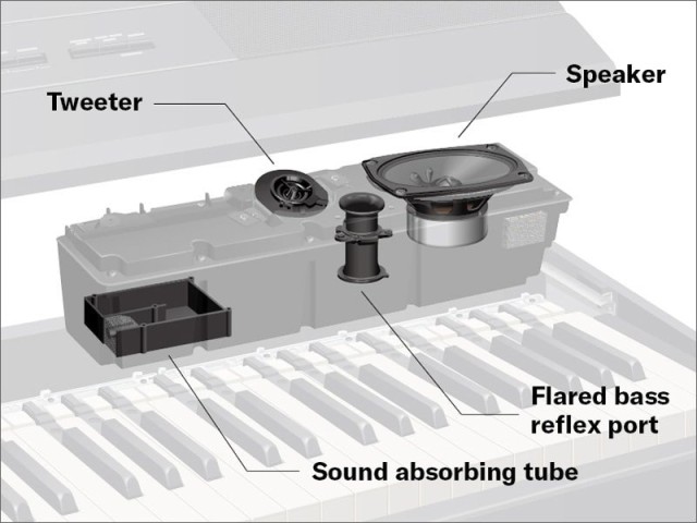 Ми також покращили корпуси динаміків. Ми використовували порти фазоінвертора, що розширюються, і фірмові звукопоглинаючі трубки, щоб істотно знизити вібраційний шум і інші надлишкові шуми, які зазвичай виходять від динаміків. Це дозволяє насолоджуватися вищою якістю звуку під час виступу.