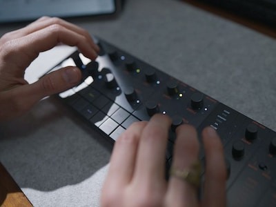 Будьте в центрі уваги завдяки потужним характеристикам SEQTRAK. Створюйте аранжування на ходу, комбінуйте треки та патерни, реміксуйте біти та заглушайте або вмикайте звучання треків у режимі реального часу. Додайте сяючого блиску своїй музиці за допомогою глобальних ефектів, а потім керуйте цими звуками наживо під час виступу.