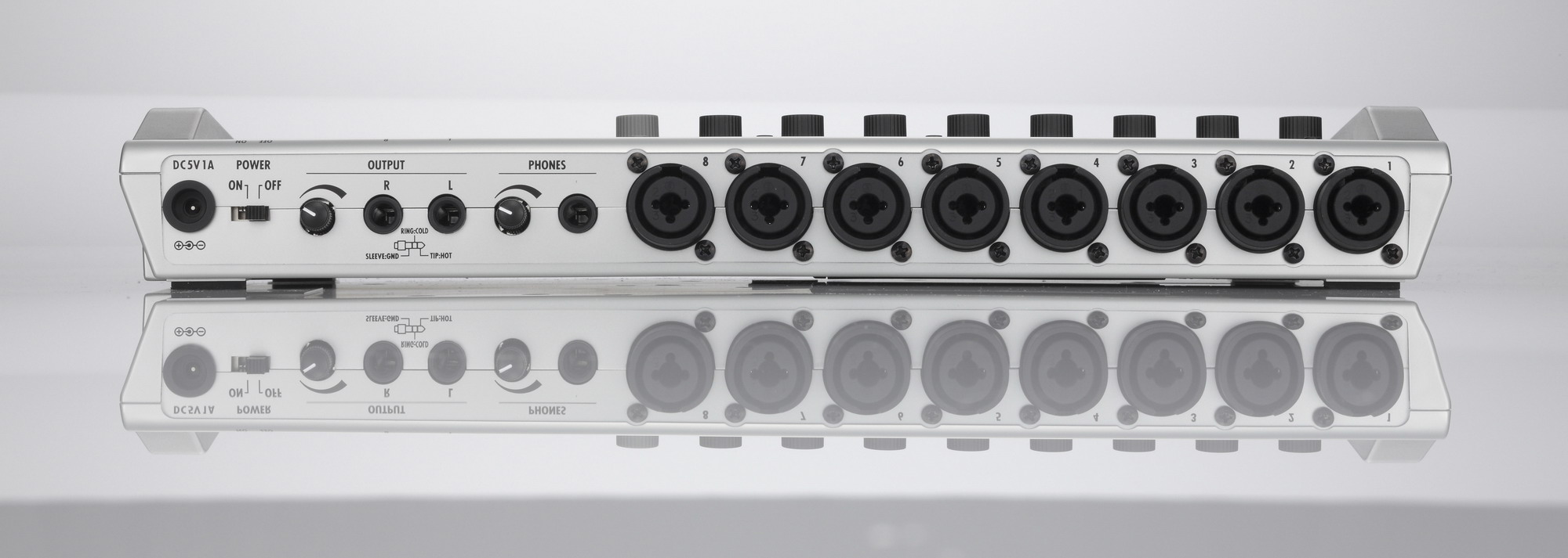 - Наличие восьми сбалансированных входов с разъемом XLR-1/4
