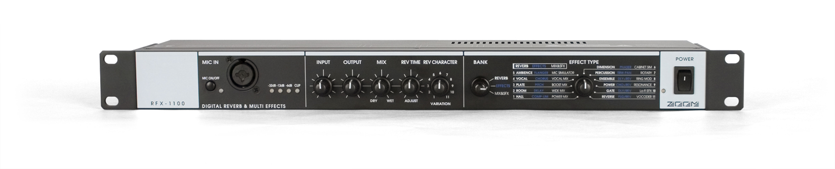 Zoom RFX-1100 – сложный мультиэффект-процессор оснащенный прямым микрофонным входом на передней панели, выполненным на комбинированном разъеме XLR/jack. Процессор включает в себя: включающий в себя ревербератор, компрессор/лимитер, дилей, смещение высоты тона, хорус, фленджер, фейзер, тремоло, расширитель стереобазы, энхансер низких частот, имитатор микрофонов, имитатор гитарных кабинетов, кольцевой модулятор, вокодер, мультиэффекты и др.