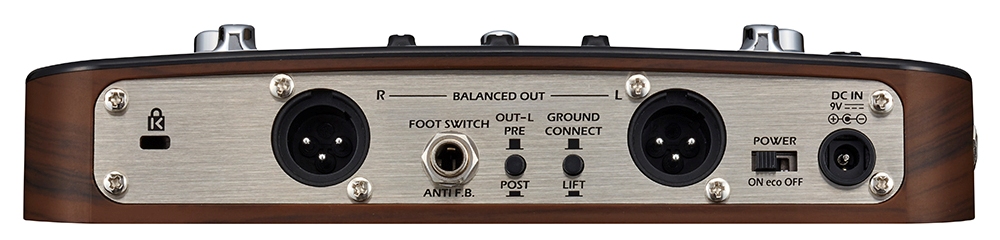 Процессор эффектов/Direct Box для акустических гитар, 16 пресетов, 15 моделей гитар, 1/4 вход, 2 балансных XLR-выхода, два 1/4" выхода моно/стерео, встроенный компрессор, эффект реверберации, 3-полосный EQ, подавитель обратной связи, Вoost-свитч усиления до 9 дБ, встроенный хроматический тюнер с LED-дисплеем, подключение по USB.