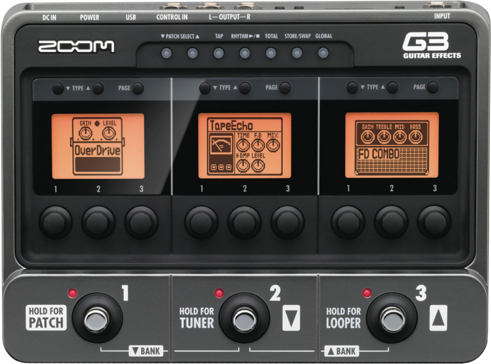 Zoom G3 - гитарный процессор, который сочетает в себе простоту напольной педали с мощностью педали мульти-эффектов и добавляет удобство драм-машины, лупера и usb-аудио интерфейс. G3 предлагает полный контроль как над индивидуальными, так и над эффектами моделирования усилителя, что позволяет изменять звучание на лету во время выступления. Если учесть весьма скромные размеры, интуитивное минималистичное управление и возможность работы от батарей, новый процессор - отличный вариант для гитаристов всех уровней.