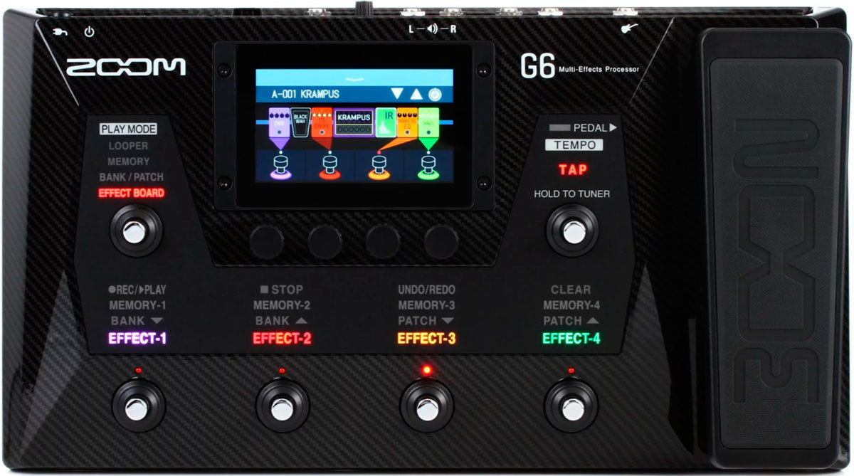 G6 также предоставляет полную коллекцию легендарных гитарных эффектов и звуков Zoom, включая совершенно новые эффекты distortion и модуляции.